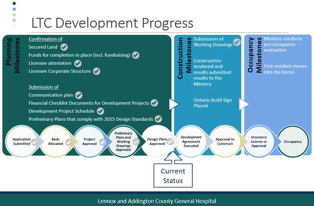 On March 18, 2021, the MPP Daryl Kramp, along with the Ministry of Long-Term Care (MLTC) and LACGH announced that a 128-bed Long-Term Care (LTC) Home would be built on the Hospital grounds. Since the announcement, the Hospital and its partners have been taking the necessary steps to get shovels in the ground as quickly as possible. The Home, once complete, will be situated on the land between the Hospital and the LACGH Lenadco Complex.
